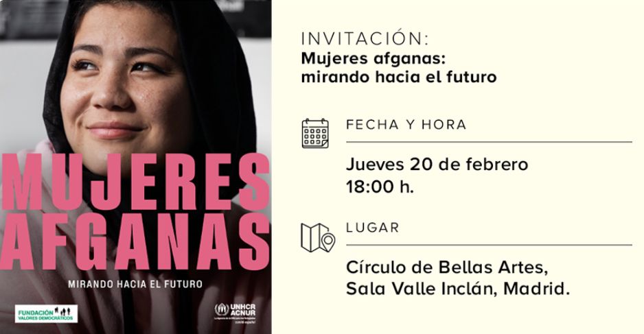 La Fundación Valsaín – Valores Democráticos y La Agencia de la ONU para los Refugiados (Comité español) tienen el honor de invitarle al XII CICLO VALORES Y SOCIEDAD “MUJERES AFGANAS, MIRANDO AL FUTURO” que se realizará el próximo 20 de febrero de 2025, a las 18:00 horas, en el Círculo de Bellas Artes, Sala Valle Inclán, Madrid.